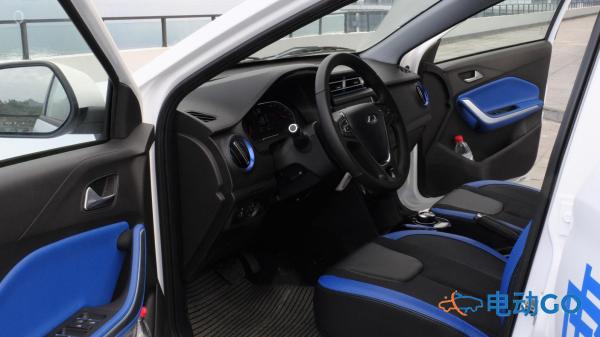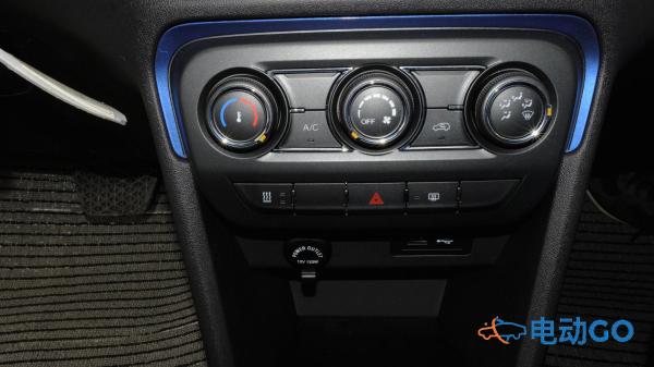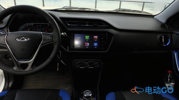 整车内饰采用蓝黑工艺设计。空调出风口和座椅边缘以及门把手均采用蓝色装饰。空调系统采用机械式旋钮设计。档位采用时下流行的旋钮式换挡。并且旋钮中央采用奇瑞标识。