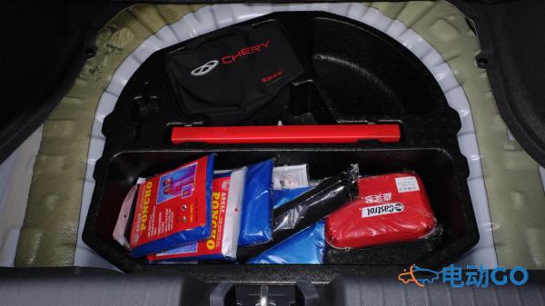 瑞虎3xe的车身尺寸为4200/1760/1570mm,轴距达2555mm,优于同级别车型,能够完全满足日常出行的需求。后备箱的常规空间为340L,后排座椅放倒后更是可以拓展至1082L, 可以一次性收纳30寸行李箱、22寸行李箱和一只大尺寸的手提袋。也能轻松摆放一部标准尺寸的折叠婴儿车。传统备胎的位置安放了很多行车安全的装备,对于我们出行安全来说至关重要。