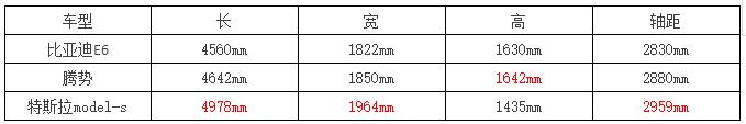 下一个级别我们来聊聊比亚迪E6、腾势和特斯拉model-s,这类车都是在补贴前30万以上的,当然特斯拉model-s80多万的价格,看上去和另外两款车不在一个层面,但是小编放在这里一起说,是因为特斯拉model-3马上就要交付了,据说model-3售价将会说40多万,所以我们从model-s中可以去猜想一下model-3。好了言归正传,首先还是先以一张表格来看看三款车的参数。