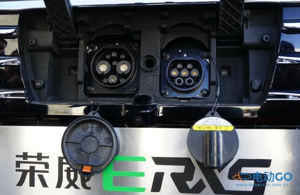 荣威ERX5充电接口融合至前中网之内,LOGO之下集成了快慢充接口,快充模式下40分钟便可充之80%。当车主为荣威ERX5慢充电时,前脸大嘴格栅处的荣威标识还会点亮变成蓝色,这种“自动呼吸”等充电提醒方式,已经在荣威eRX5之上有所体现。同时为区分两者之间差异,主驾驶侧翼子板上方还佩戴了“绿芯”新能源专属标示徽章。
