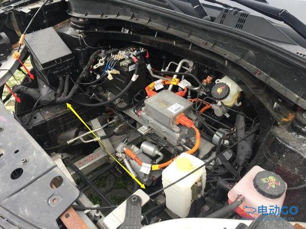 上图为荣威ERX5前悬架特写。红色箭头所指的是驱动电机。
