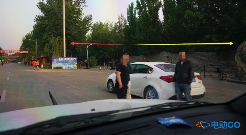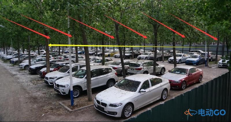 红色箭头:使用慢充桩充电的比亚迪e6电动汽车