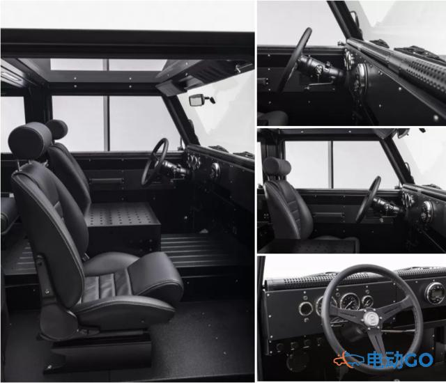 Bollinger B1在内饰的设计上,采用了十分简洁的设计。仪表盘采用了模拟仪表而不是LED显示,娱乐系统也只有AM/FM广播、蓝牙、以及AUX 输入等基本功能。其主要亮点在于对车内空间的利用,不仅后座可以自由拆卸;门,天窗和后车窗也能随时根据自己的喜好进行改造。