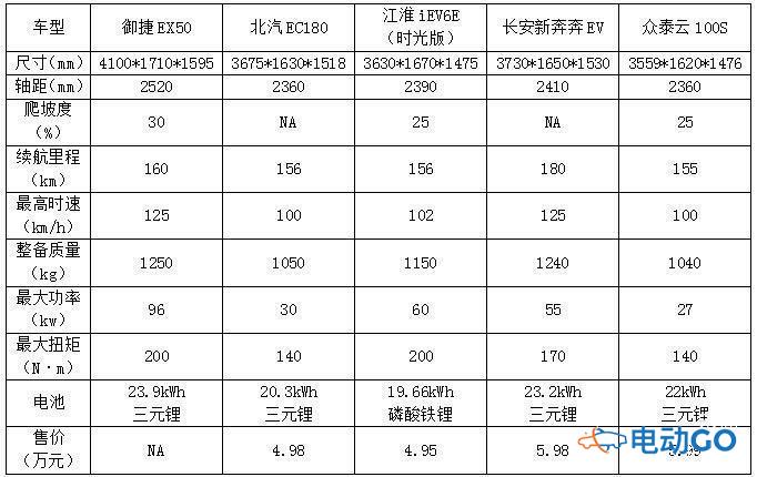 长城与御捷合作的首款电动汽车EX50,竞争对手锁定为北汽EC180、江淮iEV6E\长安奔奔EV以及众泰运100S等入门级电动汽车。比对竞品车身尺寸、续航里程以及整车售价,长城御捷EX50电动车售价或为4万元甚至更低(扣除补贴后)。也只有通过低价策略,才可以与众多“老牌对手”相抗衡。