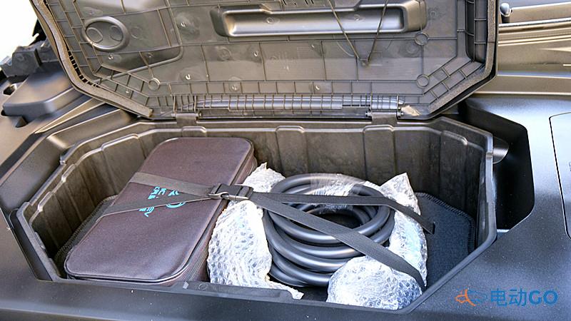 除了这些智能科技之外,还有超大的装载能力,当放到后排座椅时,呈现给我们的是巨大的空间表现,几乎能够装下所有的家用电器(超大尺寸除外,毕竟定位于紧凑级SUV)。除了后备箱的超大空间外,运用北汽e-Motion Drive 3.0系统的电驱动系统可以给我们腾挪出一个可以装充电线,维修工具的前备箱。我们可以装备一些常用的工具,以备不时之需。