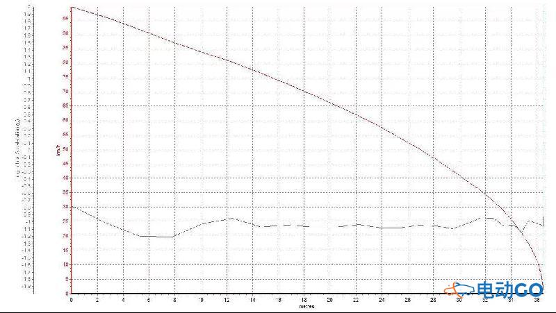 动力的突出表现还在于起步加速的能力,来看下表,0~50km/h仅需2.76S,这个时速在目前的市场中来说,做到运动二字已经实属不易。而在制动距离方面,这款车的制动100km/h到0仅仅只有37.4m,这个距离成为目前新能源汽车行业的优秀级别。