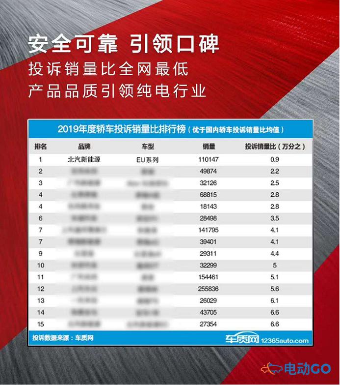 EU系列不仅在销量上持续领先,也在口碑层面收获了广泛好评。在“2019年度国内新能源汽车投诉销量比排行榜”中,其凭借万分之0.9的最低投诉销量比,夺得年度质量冠军;在中国汽车技术研究中心(CATARC)发布的2019年中国新能源汽车消费者调研结果与EV-TEST测评中,EU5位列纯电动非A00级轿车市场满意度第一。